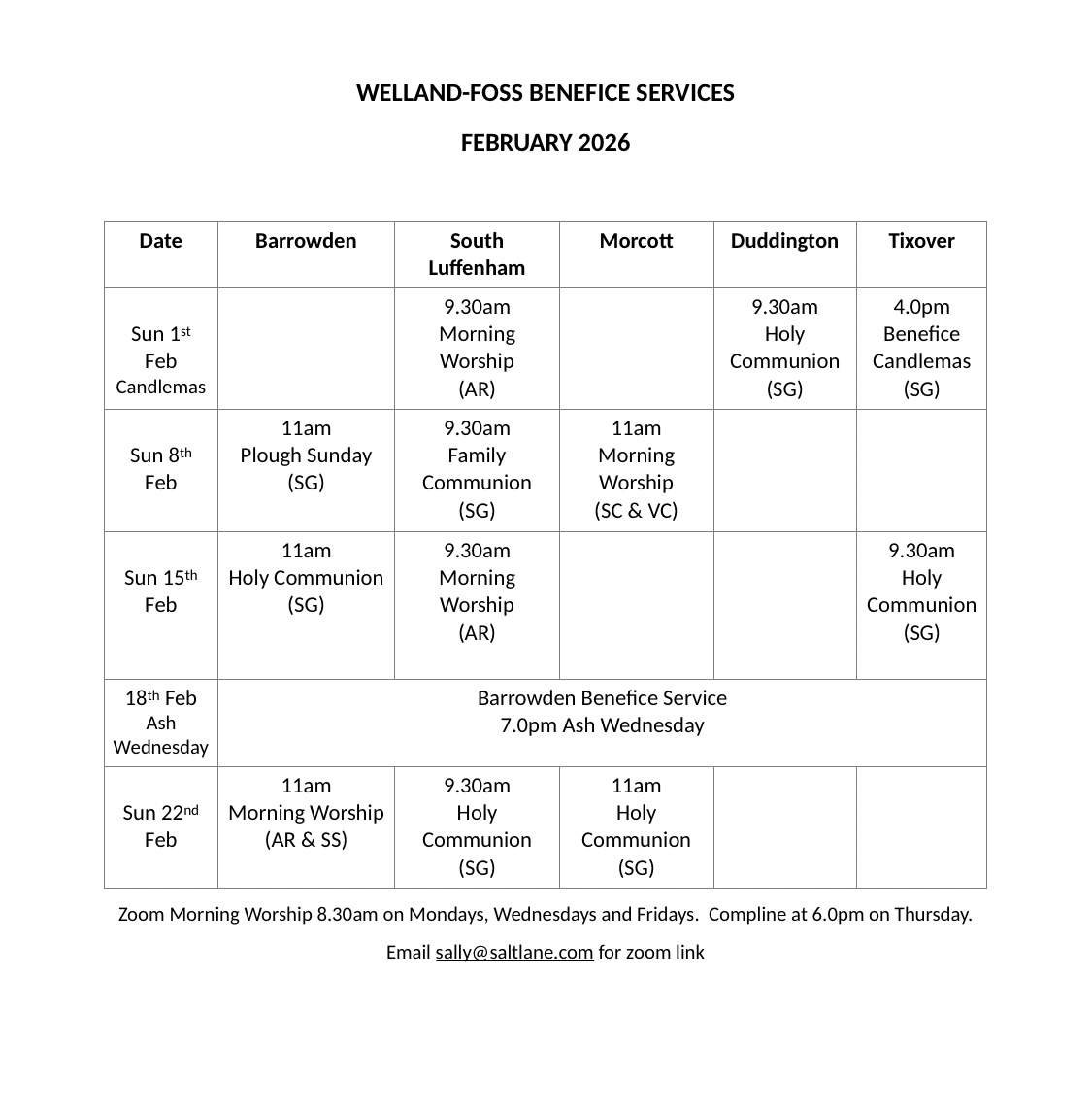 Benefice services for February 2026 Benefice services for February 2026 January 25, 2026 Tim Salt Screenshot