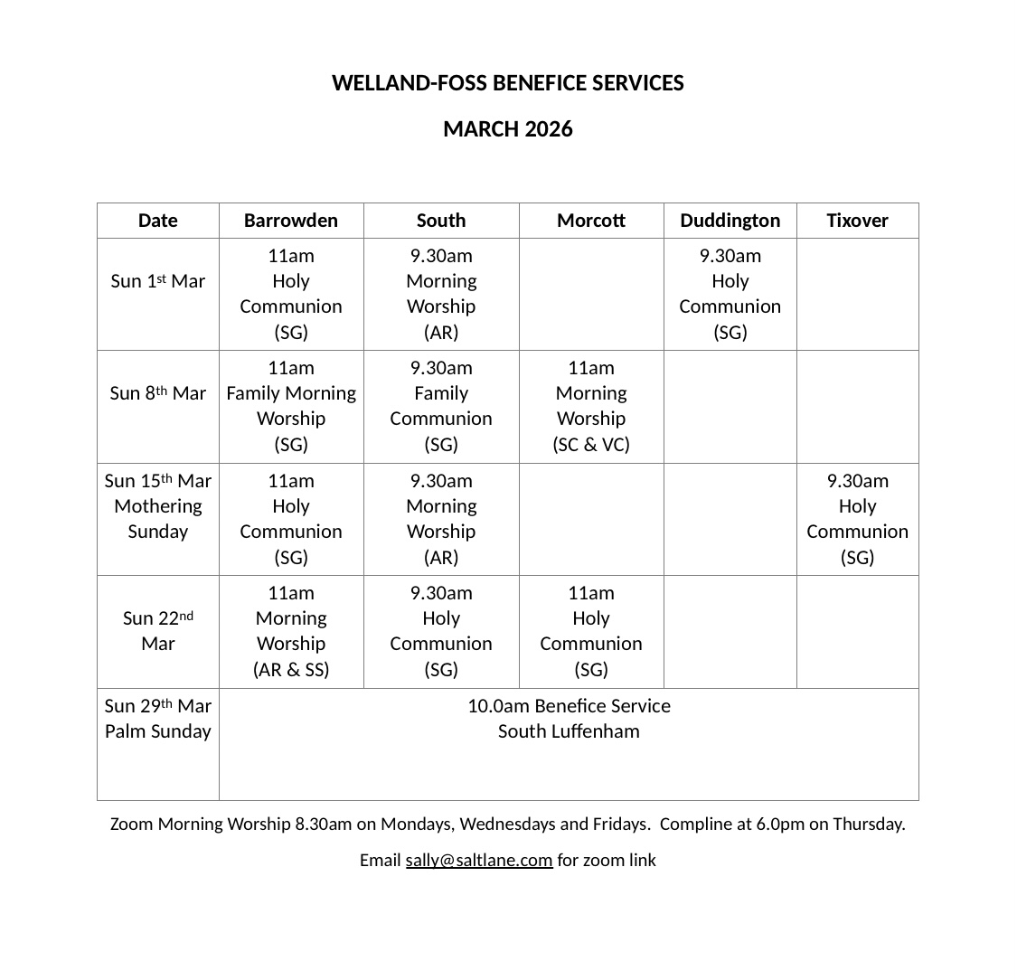 Benefice services for March 2026 Benefice services for March 2026 February 22, 2026 Tim Salt Screenshot